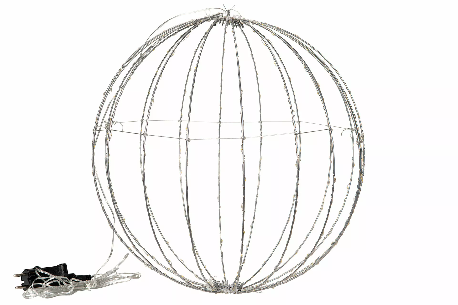 Denna LED-boll med varmvit belysning är en imponerande dekoration för utomhusmiljöer. Tillverkad av plast och metall är den både hållbar och estetisk. Utrustad med 320 varmvita LED-lampor skapar den ett stämningsfullt ljus som passar perfekt för att lysa upp trädgården, altanen eller andra utomhusytor.