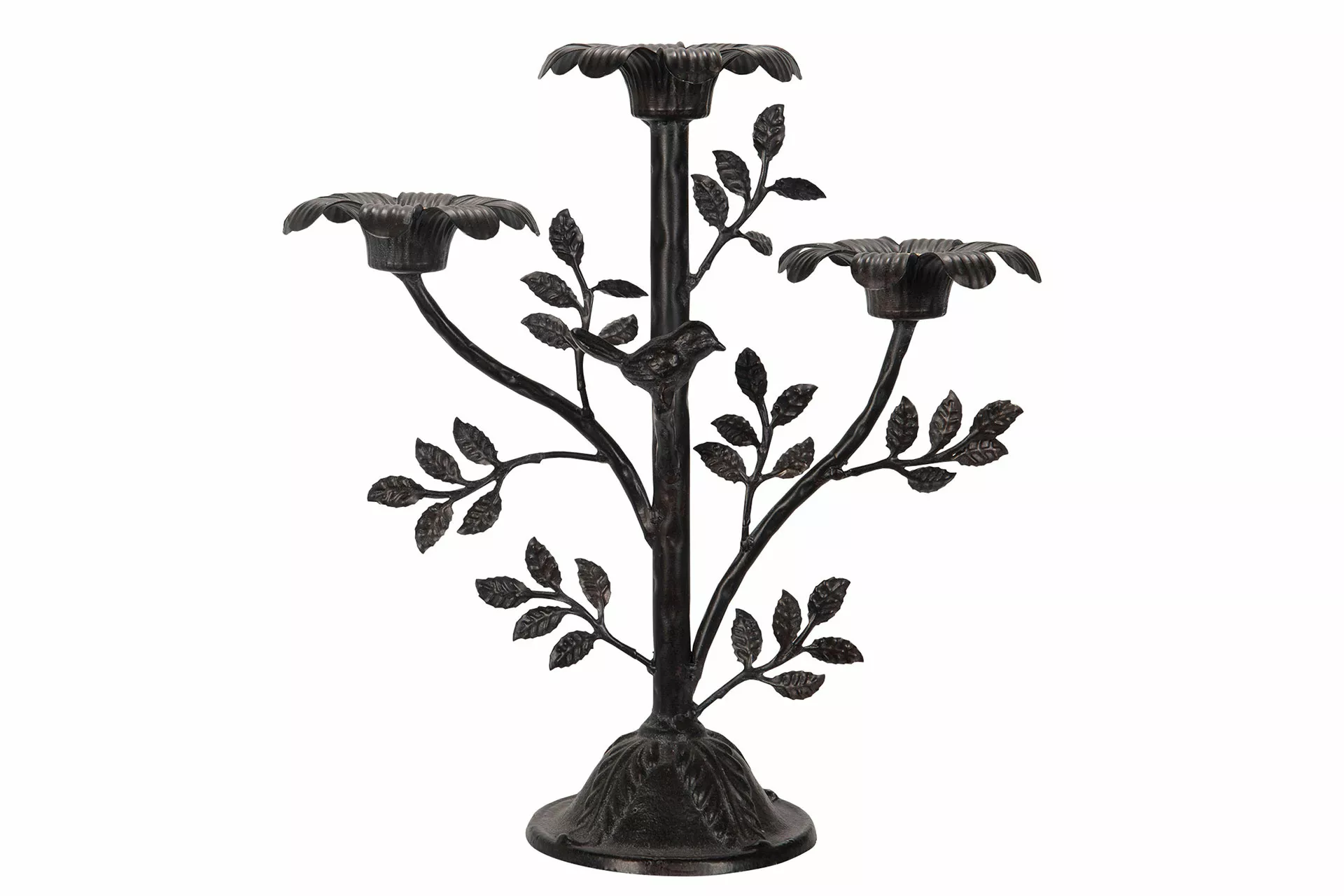 Denna eleganta ljusstake i svart och mässing är inspirerad av naturens skönhet, med grenar och blad som sträcker sig uppåt och en liten fågel som sitter på en av kvistarna. Ljusstaken har plats för tre ljus och ger ett mjukt och varmt ljusspel som skapar en stämningsfull atmosfär i rummet. Den detaljrika designen gör att ljusstaken passar utmärkt som ett dekorativt inslag på middagsbordet, i vardagsrummet eller i fönstret.