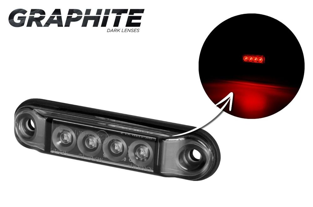 Rött positionsljus slim med mörk tonat glas.