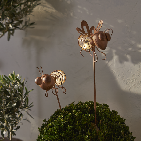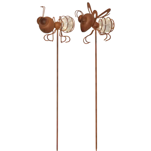 Oxida dekorationspinnar är ett 2 pack med en myra och en fluga i samma paket. De är fina att dekorera med i en blomsterkruka, eller i en rabatt och de är lika vackra tända som släckta. I mörkret lyser de upp med 6 små ljuspunkter som blinkar lite. Placera belysningen där solen kan nå panelen under dagen för att få ultimat laddning till det medföljande batteriet.