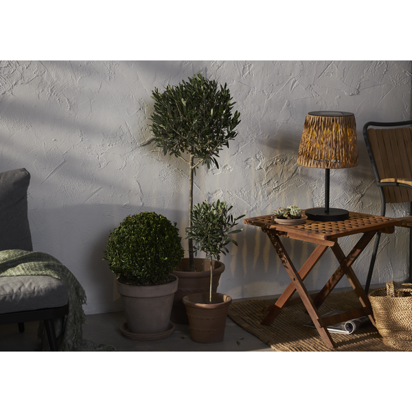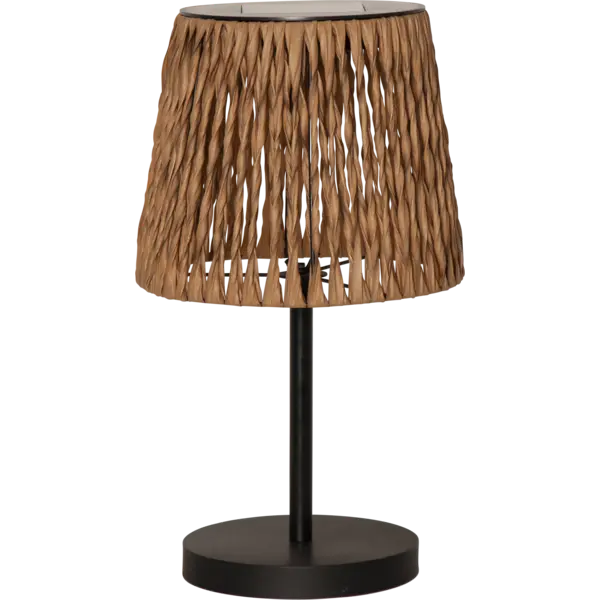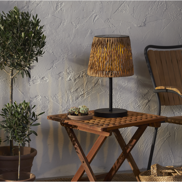 Solcells bordslampan Cesta har en skärm med lindad och tvinnad brun konstrotting gjord av PE. Stolpen och basen är gjord av metall som är brännlackerad i svart. Den är lättplacerad på din uteplats eller balkong och ger en mysig atmosfär. I Cesta serien finns även en golvlampa och en slinga. Placera solcellslampan så att panelen får direkt solljus under dagen för att ladda batterierna som medföljer på bästa sätt.