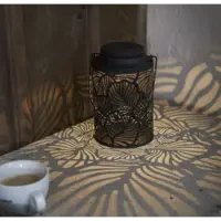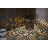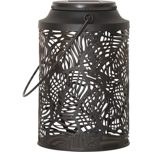 Vår fina lykta Leafy är en solcellsbelysning gjord i svart metall. Det varmvita ljuset lyser vackert genom det stansade lövmönstret och bildar en vacker ljusbild. Lyktan är fin att placera i på din uteplats, hängande i ett träd eller på en balkong. Placera solcellsdekorationen där solen kan nå panelen under dagen för att få ultimat laddning till det medföljande batteriet.